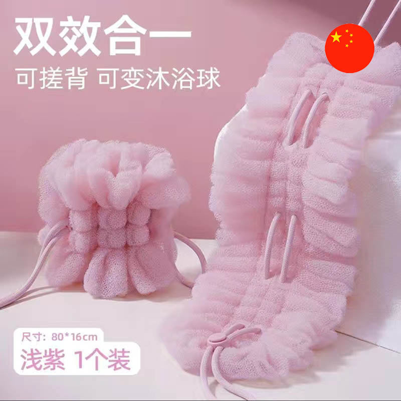 Характеристики: Это мочалка с двойной функцией (массаж спины и шарик для ванны). Главная особенность этого изделия — его двойное применение: его можно удлинить, чтобы вытирать спину, или укоротить и использовать как губку.