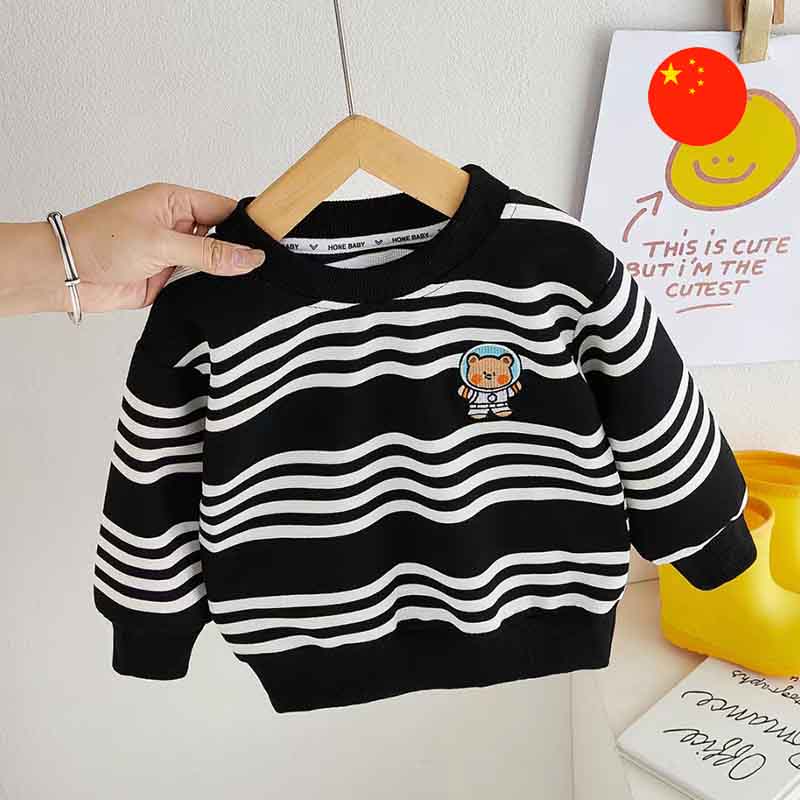 Особенности: Стильный и комфортный свитер с яркими полосками. Главная изюминка милая нашивка с мишкой-космонавтом, которая придаёт образу игривости. Отличный выбор для повседневных прогулок и игр.