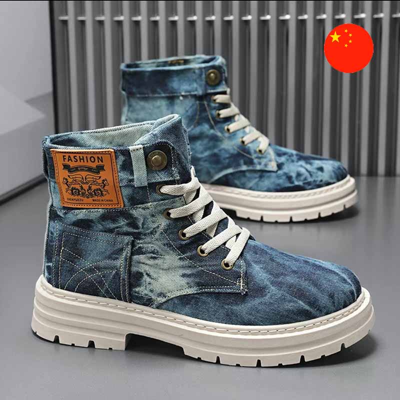 • Особенности: Эти модные ботинки из денима с эффектом "варёнки" идеальный выбор для создания уникального и расслабленного образа. Контрастная белая подошва и шнурки подчёркивают их современный дизайн.