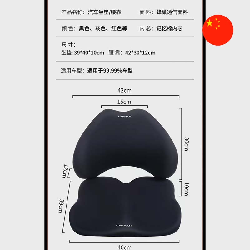 • Особенности: Это комплект из двух частей подушек для небольшого автомобильного сиденья, который в основном обеспечивает комфорт для поясницы водителей, помогая им управлять автомобилем более комфортно и безопасно.