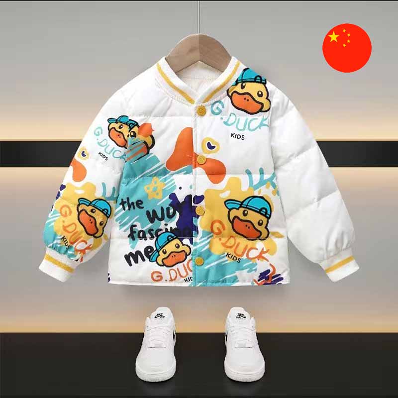 • Особенности: Яркая, утеплённая куртка для детей выполнена в нежном цвете и полностью покрыта крупным, забавным принтом утят. Куртка имеет классические трикотажные резинки на манжетах и поясе. Материал стёганый с утеплителем. Идеально подходит для межсезонья.