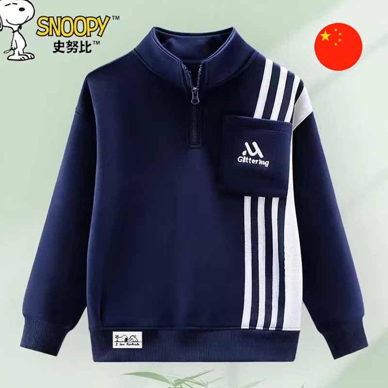 • Особенности: Стильный и удобный детский свитшот от бренда "SNOOPY"для повседневного ношения и активного отдыха. Классический темно-синий цвет дополнен контрастными спортивными элементами, которые делают эту модель ультрамодной! Удобный воротник-стойка с короткой молнией (полузамок) позволяет легко регулировать тепло и быстро одеваться.