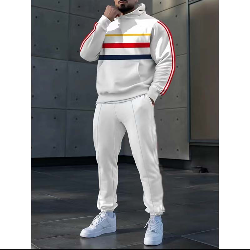 Особенности: Идеальный выбор для тех, кто ценит комфорт и не боится быть в центре внимания. Этот белый спортивный костюм — настоящий must-have сезона. Главная особенность – контрастные вставки в виде черно-красных полос на груди худи и по бокам брюк. Они мгновенно выделяют вас из толпы и создают энергичный образ. Для стильных мужчин, которые выбирают спортивный шик, ценят качество и уверенность в каждом движении.