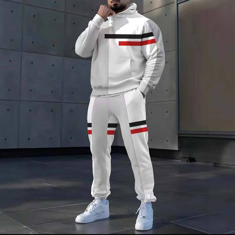 • Особенности: Идеальный выбор для тех, кто ценит комфорт и не боится быть в центре внимания. Этот белый спортивный костюм — настоящий must-have сезона. Главная особенность – контрастные вставки в виде черно-красных полос на груди худи и по бокам брюк. Они мгновенно выделяют вас из толпы и создают энергичный образ. Для стильных мужчин, которые выбирают спортивный шик, ценят качество и уверенность в каждом движении.