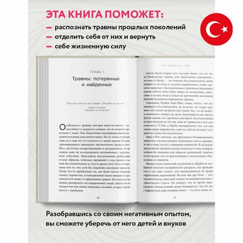 • Особенности: «Это началось не с тебя» — революционная книга, которая предлагает взглянуть на наши проблемы под новым углом. Автор, Марк Уолинн, исследует феномен, когда наши эмоциональные и жизненные сценарии, страхи и даже физические симптомы являются не нашими, а унаследованы от предыдущих поколений семьи.