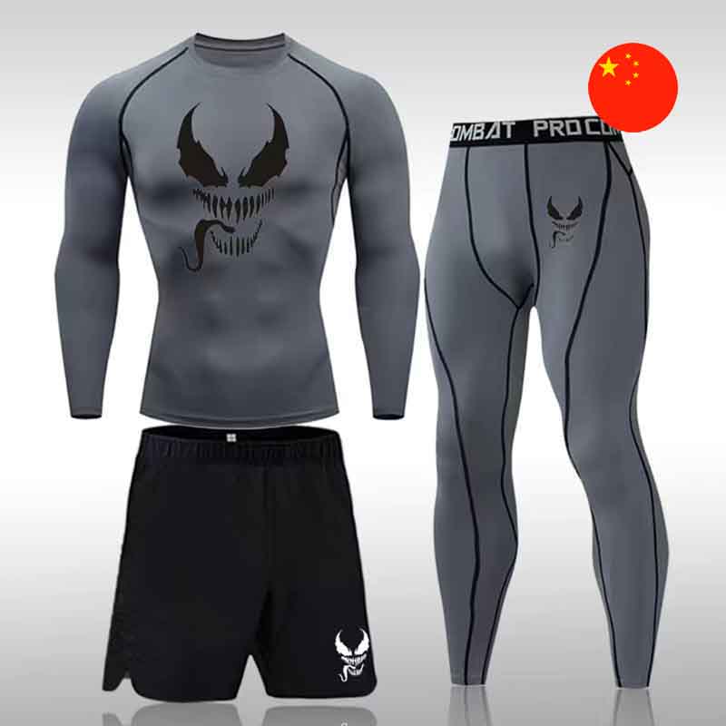 Особенности: Мужской компрессионный спортивный костюм с ярким принтом Венома. Этот костюм идеально подходит для фитнеса, бега, йоги, тренировок в зале и других спортивных занятий. Он обеспечивает свободу движений и комфорт даже при интенсивных нагрузках.