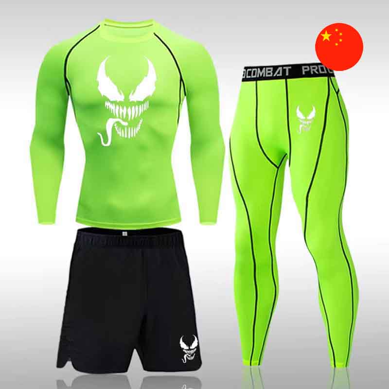 • Особенности: Мужской компрессионный спортивный костюм с ярким принтом Венома. Этот костюм идеально подходит для фитнеса, бега, йоги, тренировок в зале и других спортивных занятий. Он обеспечивает свободу движений и комфорт даже при интенсивных нагрузках.