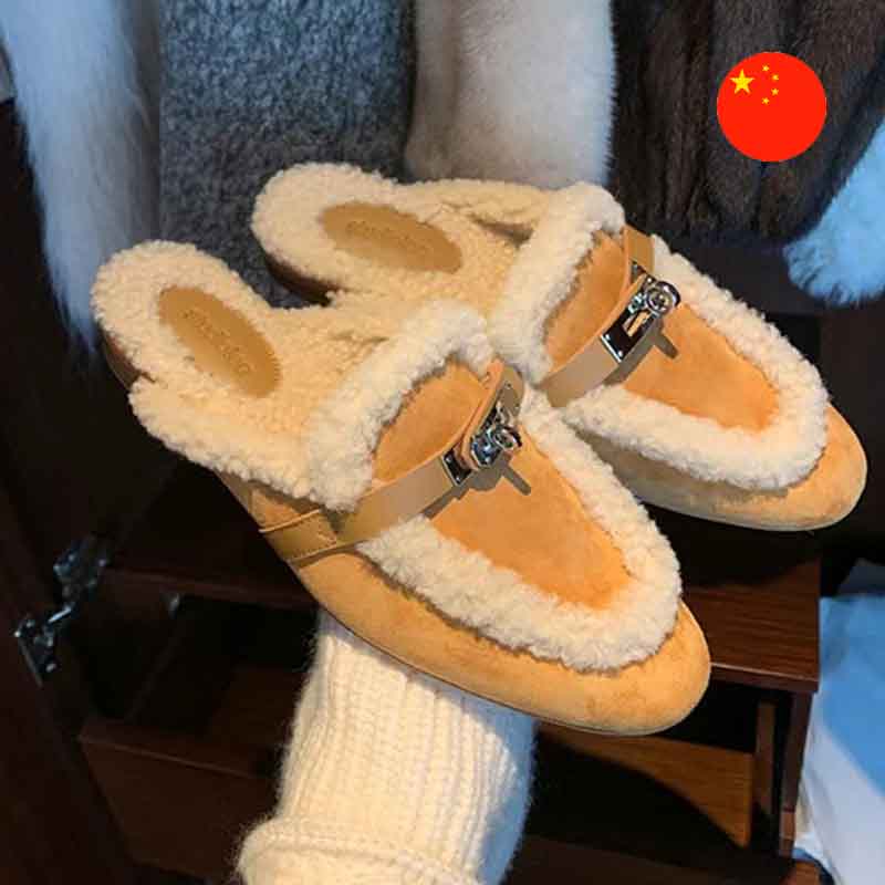 • Особенности: Эти мюли изготовлены из мягкой замши коричневого цвета, которая отличается приятной текстурой и долговечностью. Внутренняя отделка из бежевого меха добавляет тепло и уют, делая их идеальными для холодного времени года.