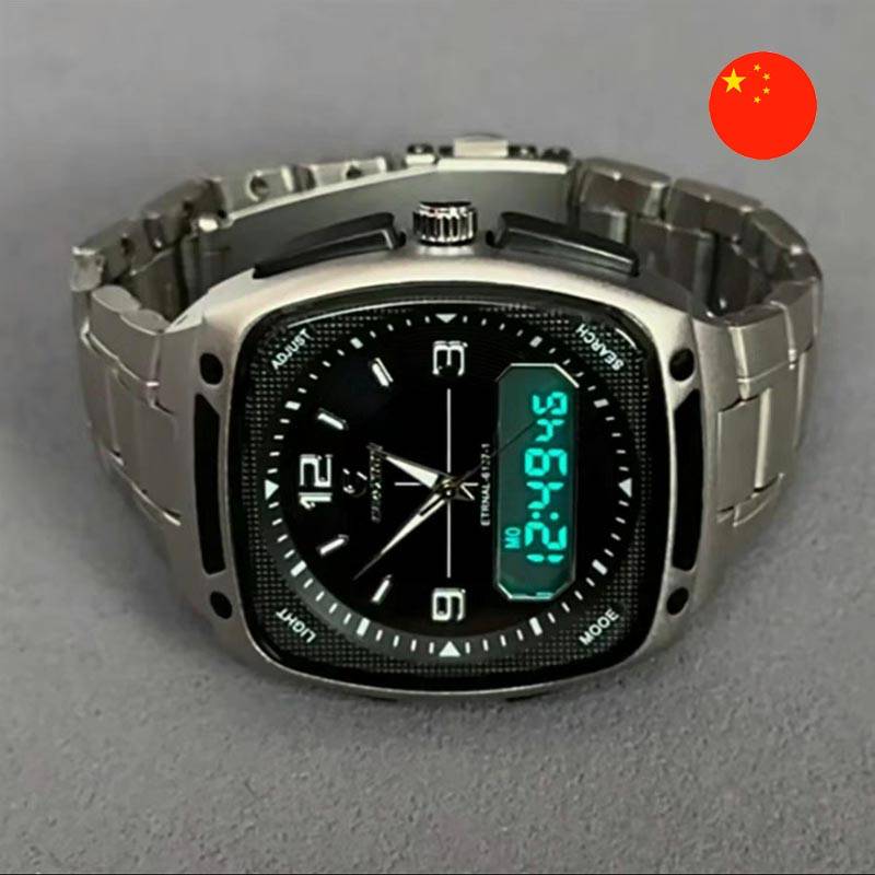 • Особенности: Надёжные кварцевые наручные часы с комбинированным аналого-цифровым циферблатом. Корпус и браслет выполнены из нержавеющей стали, что гарантирует долговечность. Модель оснащена функциями будильника, секундомера, таймера и отображения даты. Водонепроницаемость до 50 м, подсветка дисплея. Идеальный выбор для повседневного использования.