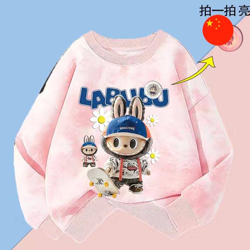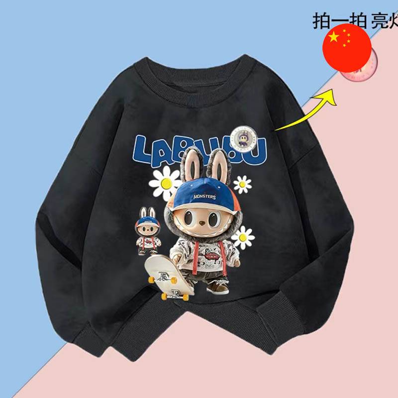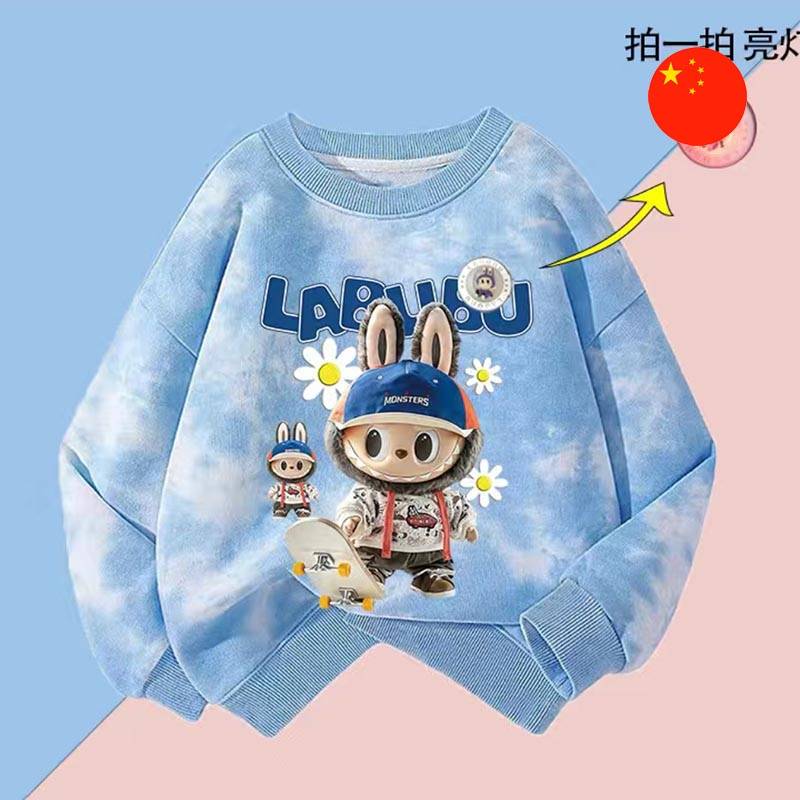 Особенности: Эта стильная детская толстовка станет ярким акцентом в гардеробе вашего ребенка. Фон подчеркивает красочный принт с изображением милых мультяшных персонажей, которые обязательно понравятся детям. На груди толстовки изображен забавный кролик в синем шлеме, а рядом с ним — его маленький друг. Надпись добавляет образу оригинальности и современности.