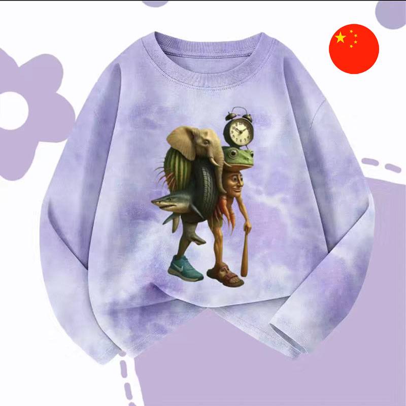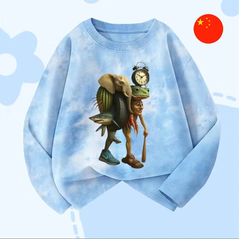 Особенности: Эта стильная детская толстовка станет ярким акцентом в гардеробе вашего ребенка. На передней части изделия изображен забавный мультяшный персонаж — лягушка в шляпе с часами, которая несет на спине рюкзак. Лягушка стоит на одной ноге, что добавляет образу оригинальности и игривости.