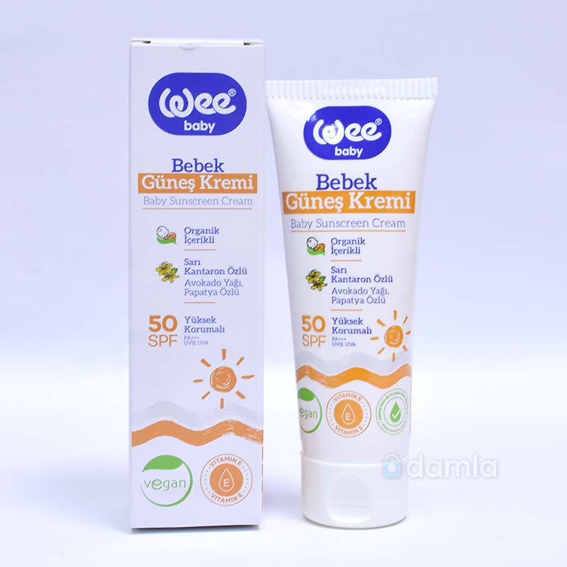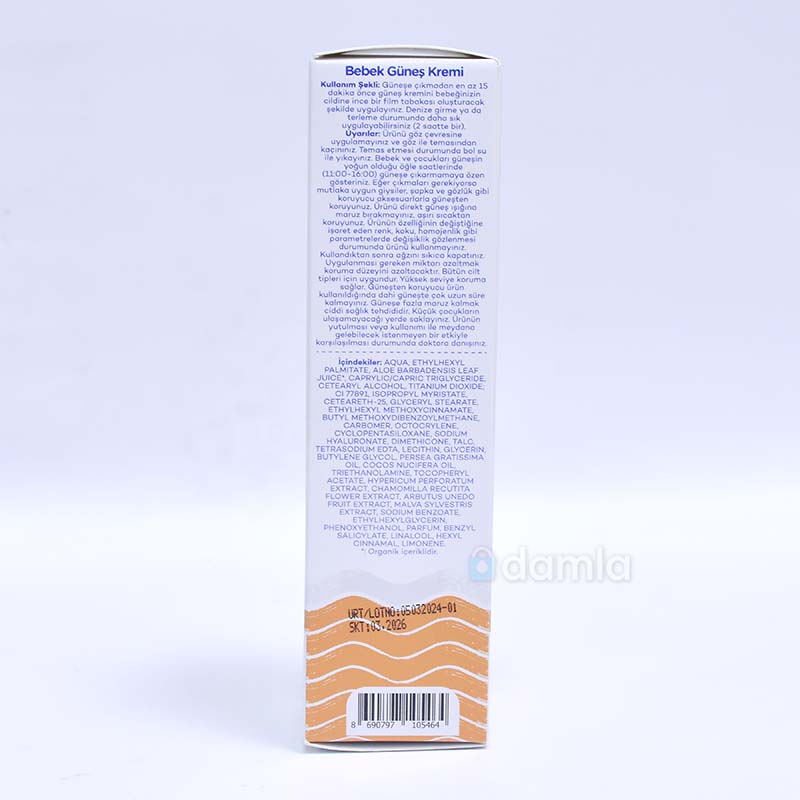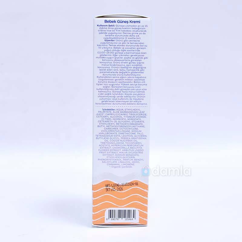 Bäbekler üçin günden goraýjy krem SPF 50 Witamin E. Deriniň ähli görnüşlerine gabat gelýär.