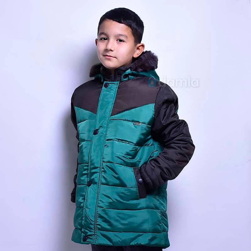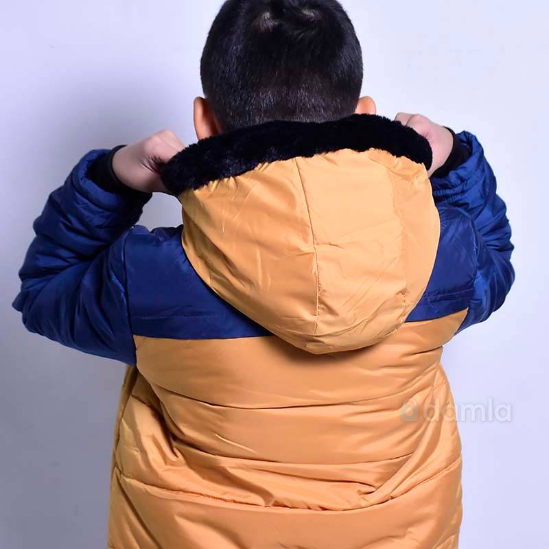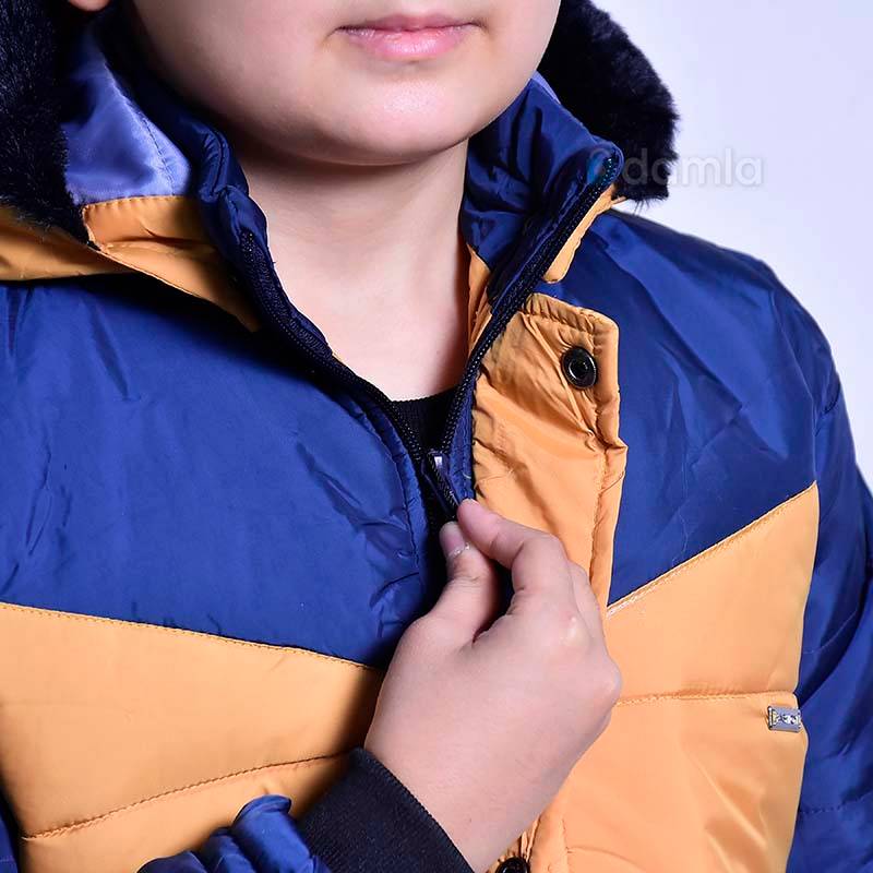 Oglan çagalar üçin gök-sary reňkli, zamokly we knopkaly kapuşonly kurtka. Döşünde demir logotip we gapdalynda 2 sany jübüsi bar.