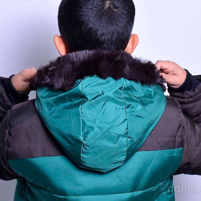 Oglan çagalar üçin gara-ýaşyl reňkli, zamokly we knopkaly kapuşonly kurtka. Döşünde demir logotip we gapdalynda 2 sany jübüsi bar.