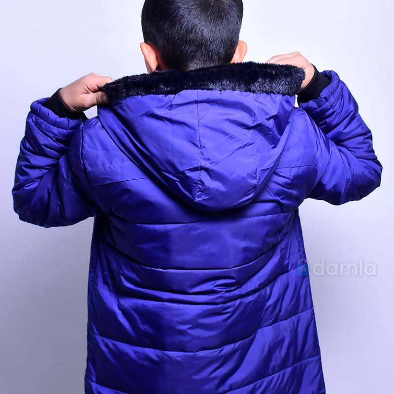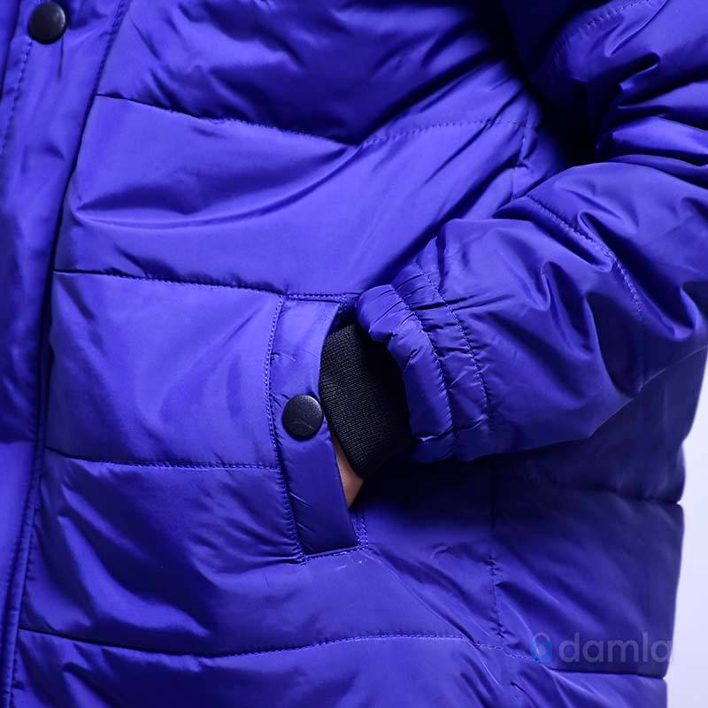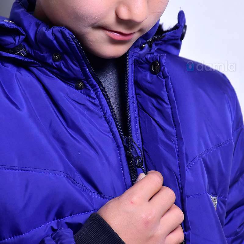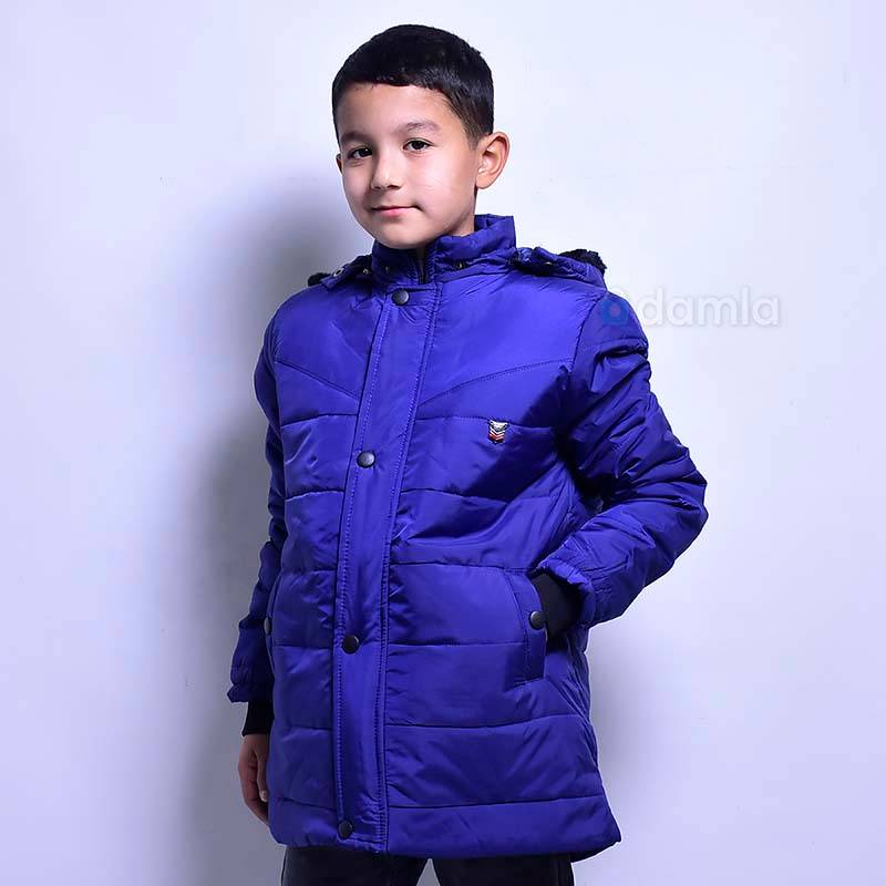Oglan çagalar üçin gök reňkli, zamokly we knopkaly kapuşonly kurtka. Döşünde demir logotip we gapdalynda 2 sany jübüsi bar.