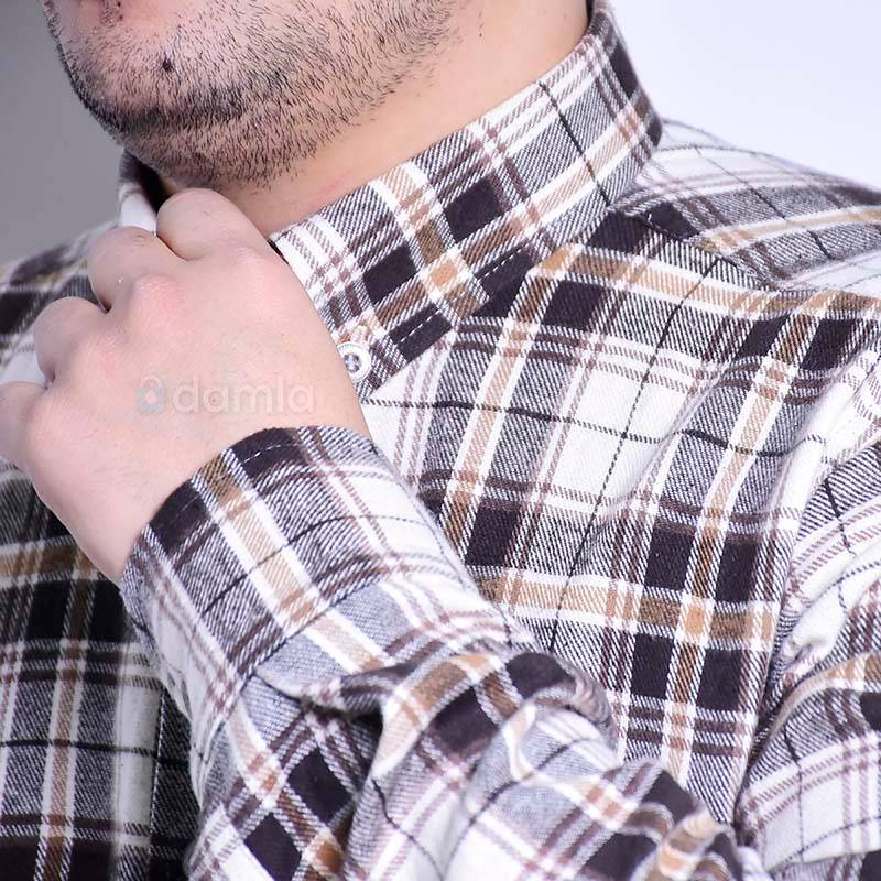 Dik ýakaly, uzyn ýeňli, ilikli erkekler üçin mele reňkli gyşky ýyly köýnek. Süýt reňkden kletkaly we döşi jübüli şeýle-de gündelik geýmek üçin stilnyý köýnek.