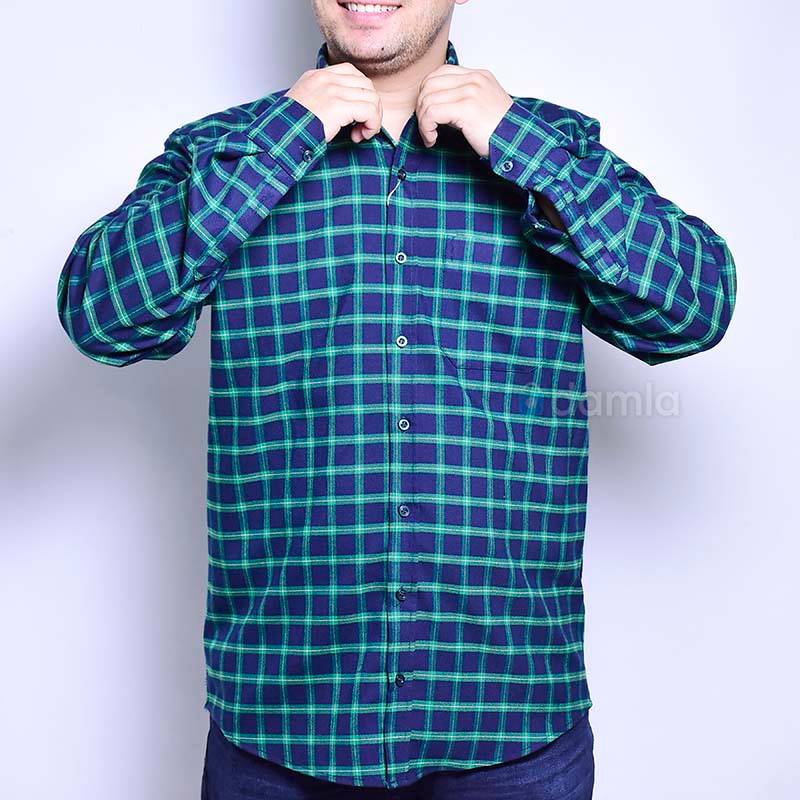 Dik ýakaly, uzyn ýeňli, ilikli erkekler üçin gök reňkli gyşky ýyly köýnek. Ak-ýaşyl reňklerden kletkaly we döşi jübüli şeýle-de gündelik geýmek üçin stilnyý köýnek.