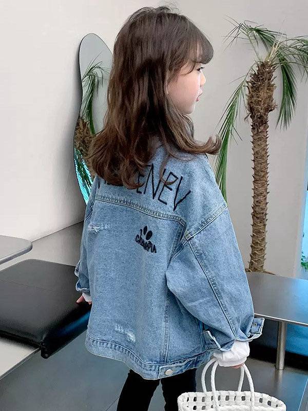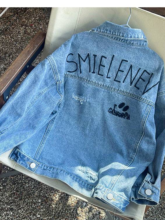 Gyz çagalar üçin açyk gök reňkli, öňi knopkaly döşünde jübsi bar we arkasynda Smilelenev ýazgyly jinsy kurtka. Bu stilnyý kurtkada siziň çagaňyz hemişe üns merkezinde bolar.