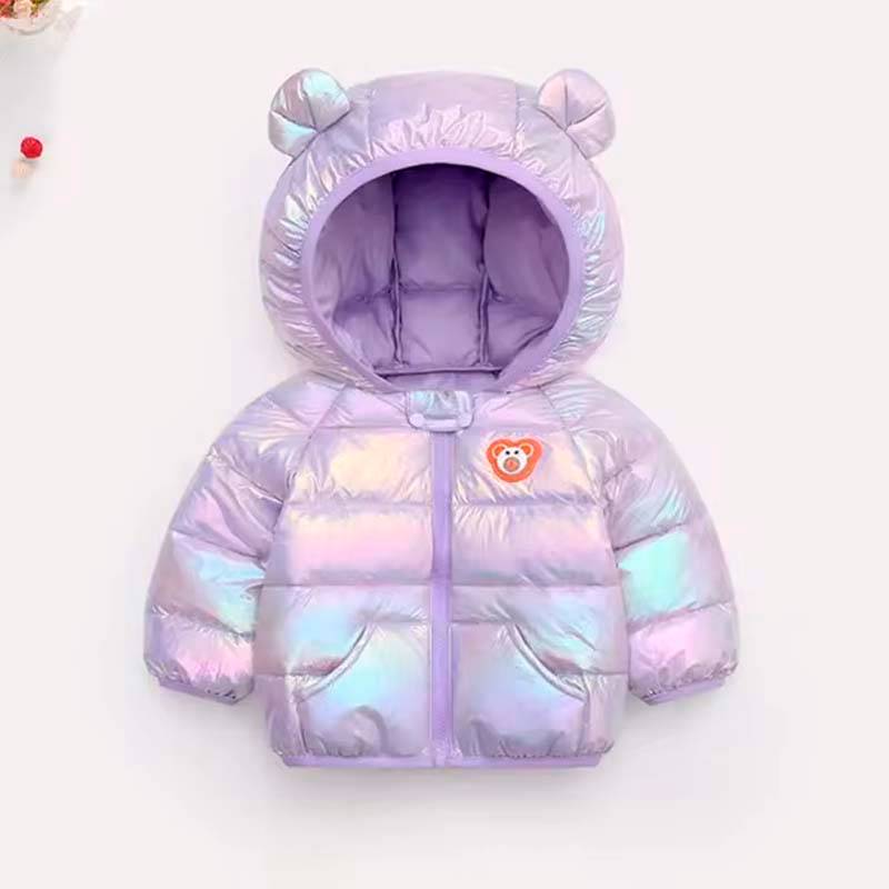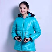 Gyz çagalar üçin açyk gök reňkli, zamokly, gapdaly jübüli kurtka. Howa geçirmeýän bu kurtka salkyn howada geýmäge gowy bolýar.