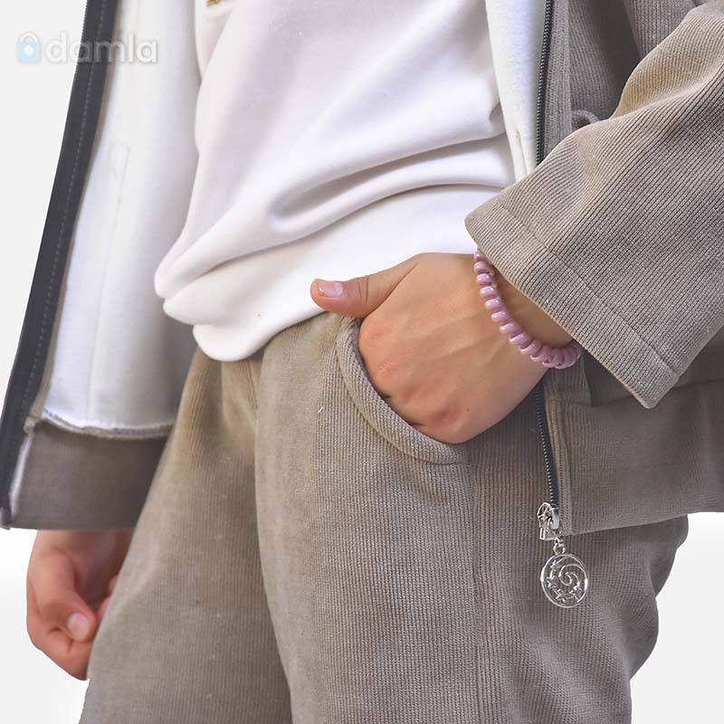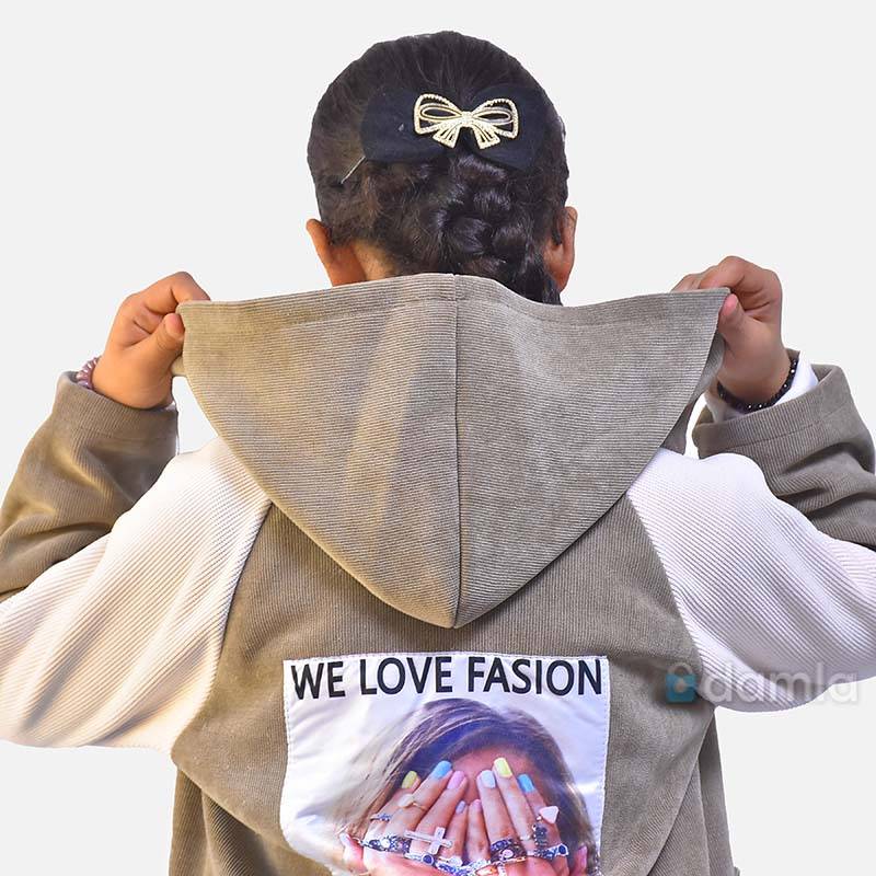 • Aýratynlyklary: Gyz çagalar üçin çal reňkli, reglan fasonly, arkasynda owadan gyzyň suraty bolan, jübüli, zamokly we kopuşonly komplekt ýyly eşik. Sowuk howada geýmek üçin örän gowy.