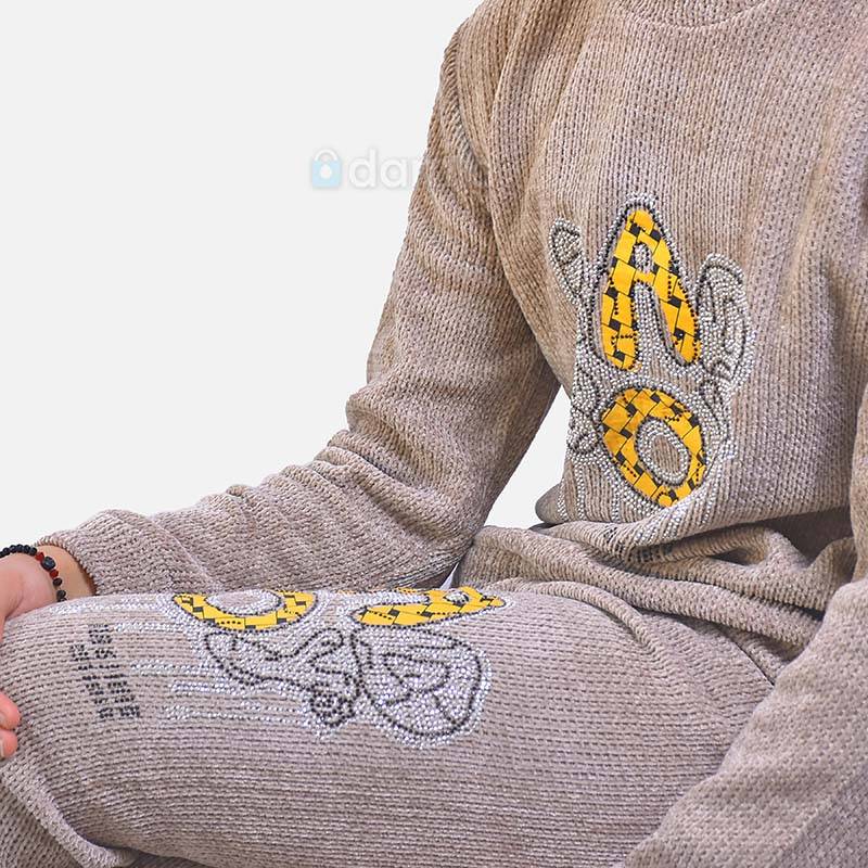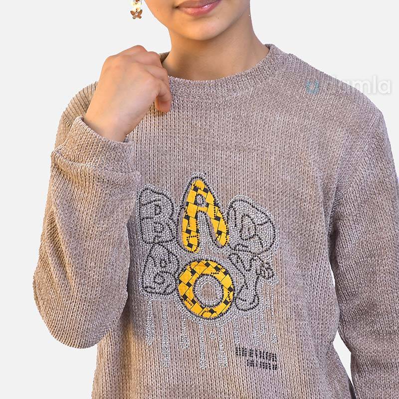 • Aýratynlyklary: Gyz çagalar üçin açyk mele reňkli, "BAD BOÝ" gaşlar bilen ýazgyly, komplekt ýyly eşik. Sowuk howada geýmek üçin örän gowy.