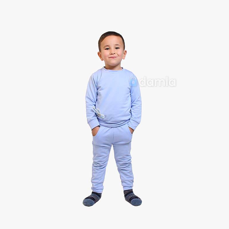 Oglan çagalar üçin açyk gök reňkli komplekt sport eşik - Rahat, oňaýly we ýakymly bu eşik sportda, pyýada gezilende we gündelik geýmäge bolýar. Şeýle-de bu eşik ýylylygy, rahatlygy we erkin hereket etmegi üpjün edýär. Sargytlar tassyklanandan soň 1-7 iş günüň dowamynda gowşurylar.