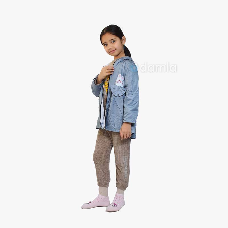 Gyz çagalar üçin 3 bölekli eşik toplumy üç elementi öz içine alýan rahat we ýakymly eşik görnüşidir: Açyk gök reňkli plaşowka, mele reňkli switer we balak. Bu toplum size dürli görnüşleri döretmäge mümkinçilik berýär we dürli howa şertlerine laýyk gelýär. Sargytlar tassyklanandan soň 1-7 iş günüň dowamynda gowşurylar.