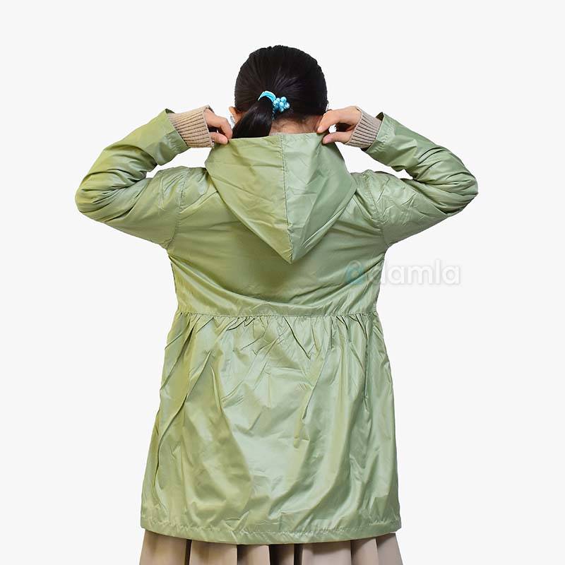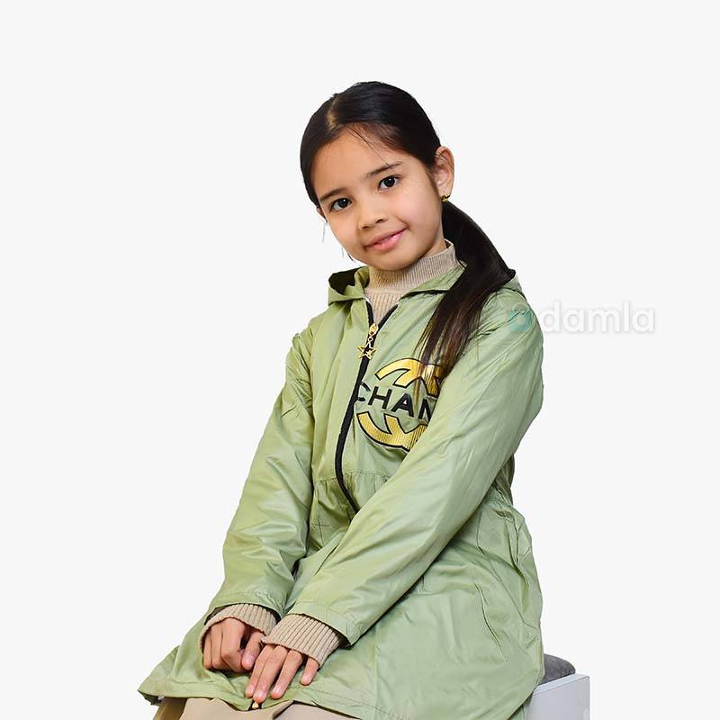Gyz çagalar üçin ýaşyl reňkli suw geçirmeýän plaş, ýagyşly howada aýrylmaz bir parçadyr. Çygly bolmakdan gorar we ýöräninde çaganyň özüni rahat duýmagyna mümkinçilik döreder. Döşi "Chanel" ýazgyly, zamokly we kapuşony bar. Sargytlar tassyklanandan soň 1-7 iş günüň dowamynda gowşurylar.