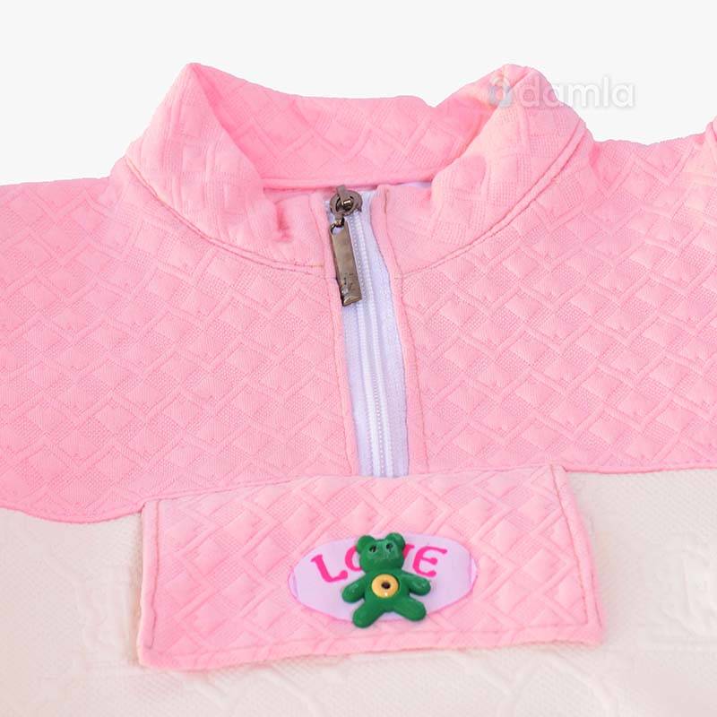 Gyz çagalar üçin gülgüne,ak reňkli komplekt eşik - zamokly longsliw we balakdan ybarat bolup, sport bilen meşgullanan wagtyň, açyk meýdançada we gündelik geýmek üçin rahat we ýakymly, oňaýly çözgütdir. Ol rahatlygy we erkin hereket etmegi üpjün edýär. Ýüzi şekilli.