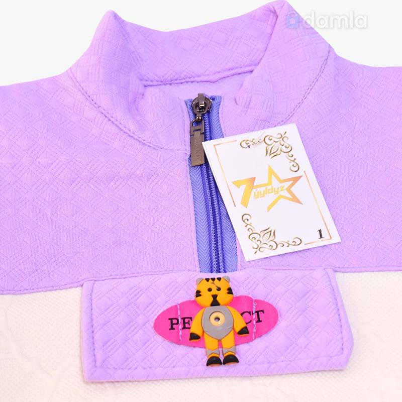 Gyz çagalar üçin açyk mawy reňkli komplekt eşik - zamokly longsliw we balakdan ybarat bolup, sport bilen meşgullanan wagtyň, açyk meýdançada we gündelik geýmek üçin rahat we ýakymly, oňaýly çözgütdir. Ol rahatlygy we erkin hereket etmegi üpjün edýär. Ýüzi pişik şekilli.