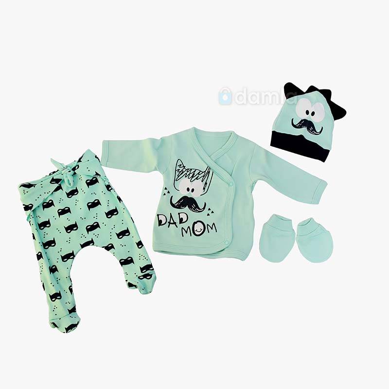 • Aýratynlyklary: Kiçi ýaşly çagalar üçin hem owadan hem endama ýakymly 5 li komplekt, pagta materialdan çagalan endamyna ýakymly ýumşajyk. Dad, Mom ýazylan knopkaly koftasy bar. Bu eşik siziň çagaňyzy stilnyý we üns merkezinde saklar. Ýyly we rahat saklamak üçin bu ajaýyp saýlawdyr.