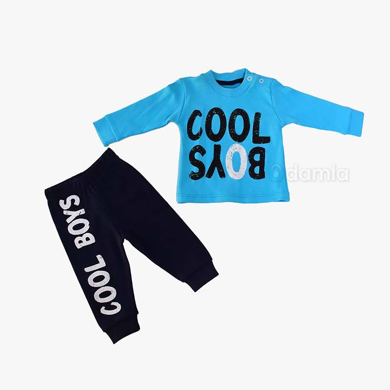 • Aýratynlyklary: Oglan çagalar üçin gök reňkli 2- li komplekt eşik. Içinde COOL BOYS ýazgyly kofta we gara reňkli COOL BOYS ýazgyly balagy bar. Gök we gara reňkler birleşip reňk sazlaşygy bir ýerde jemlenýär we çagaňyza stilnyý bir görnüş berer. Dürli ýagdaýlarda baýramçylykda, pyýada we gündelik geýmek üçin gowy saýlaw.