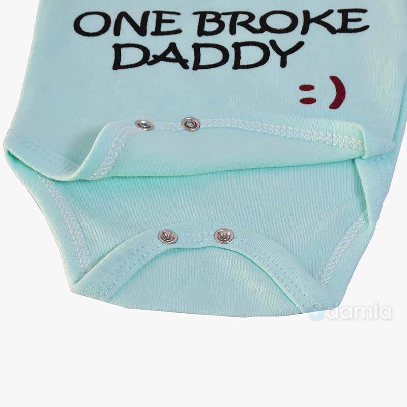 • Aýratynlyklary: Dünyanin En Tatli BABASI Olmaya Hazir Misin? ýazgyly hem firuza reňkli Bäbekler üçin bodi - içki eşikleriň bir görnüşidir. Aşakda knopka bilen berkidýärler, bu bolsa pampersini çalyşmagy amatly edýär we eşikleriň ýokary galmagynyň öňüni alýar.