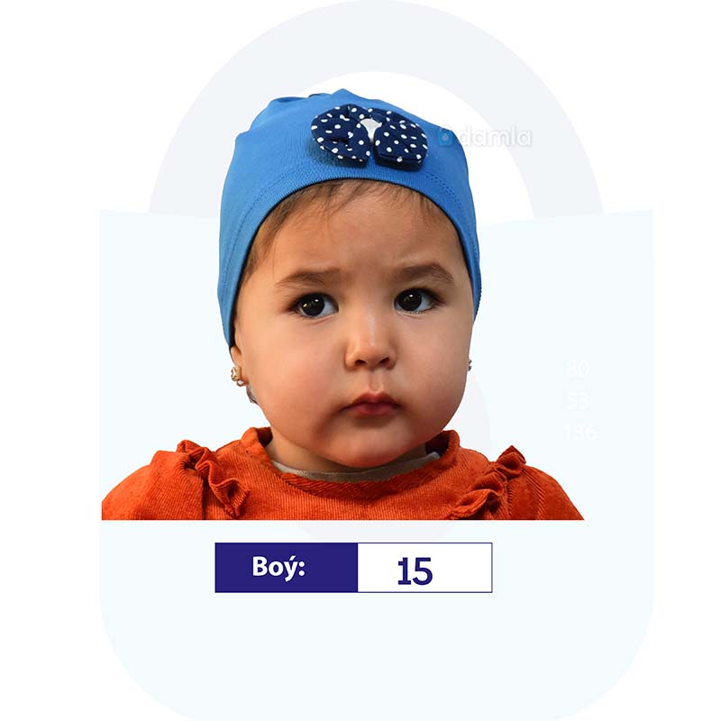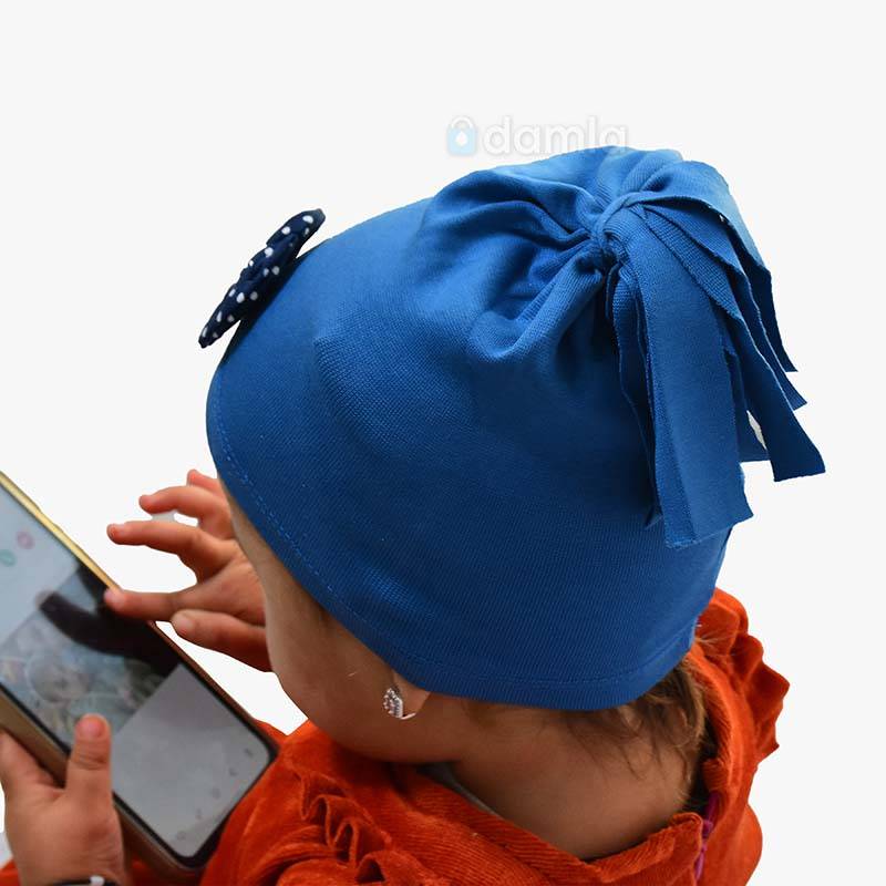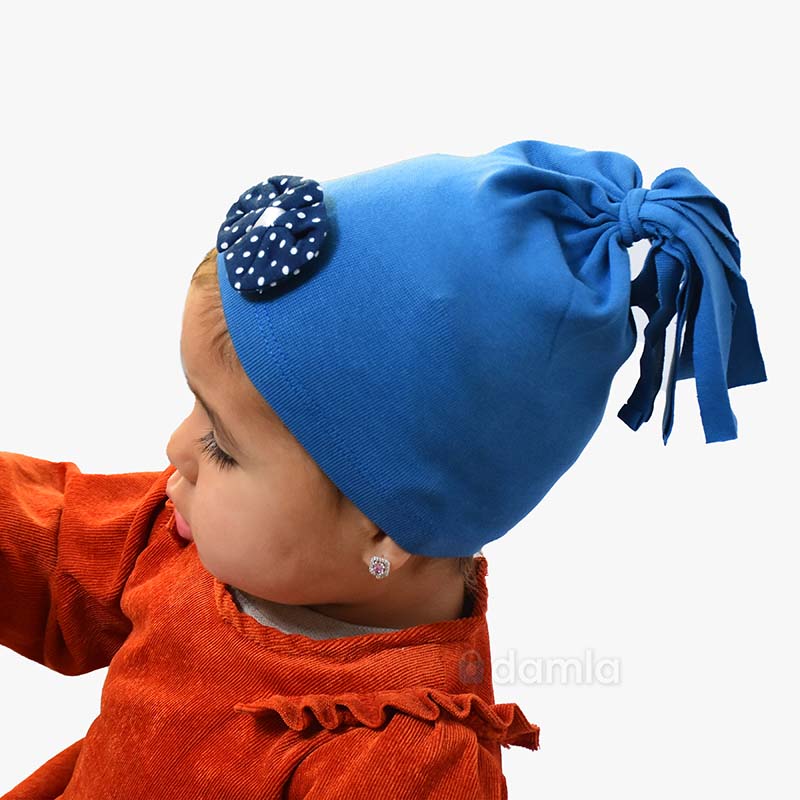 • Ayratynlyklary: Gyz çagalar üçin ýapyk gök bantikli gök şapka.Güýz we gyş möwsümleri üçin niýetlenen.