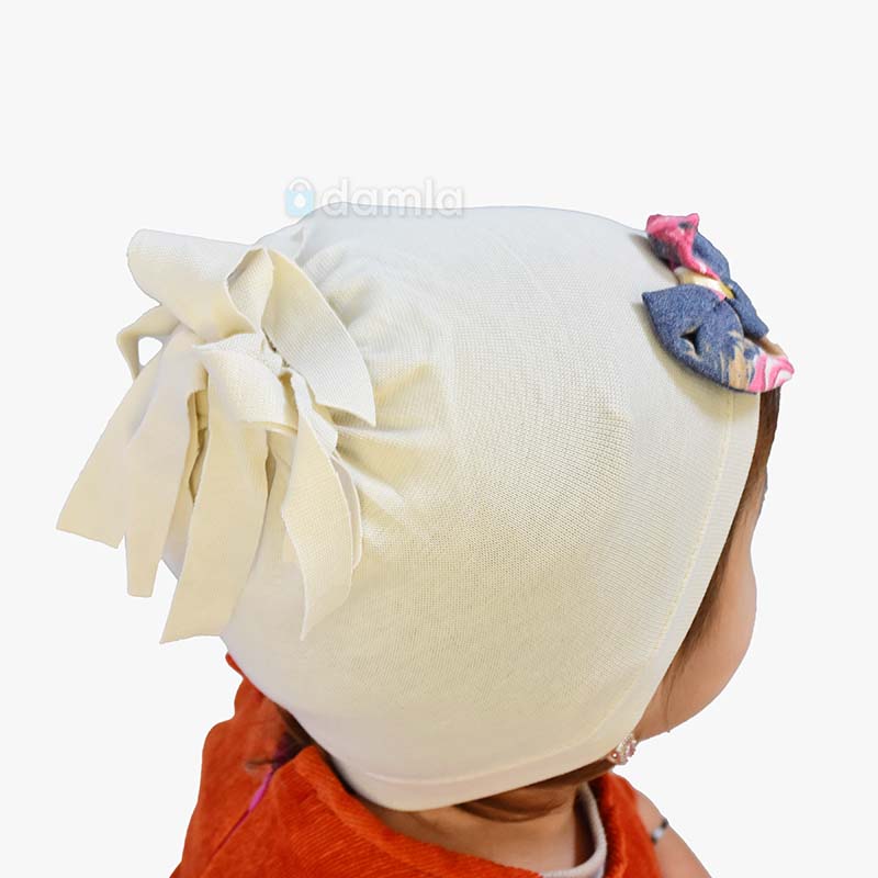 • Ayratynlyklary: Gyz çagalar üçin ýapyk çal bantikli süýt reňkli şapka.Güýz we gyş möwsümleri üçin niýetlenen.