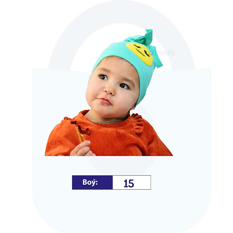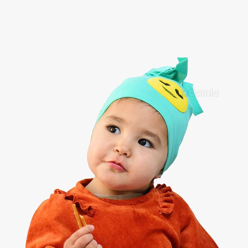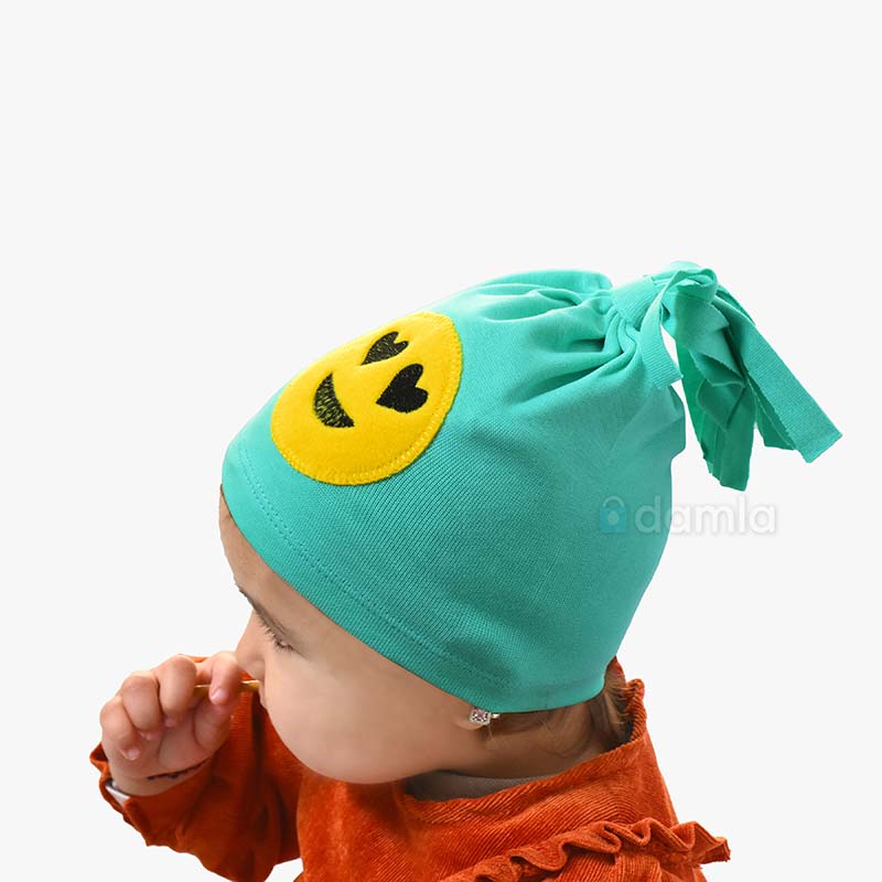• Ayratynlyklary: Gyz çagalar üçin sary stikerli, firuza reňkli şapka.Güýz we gyş möwsümleri üçin niýetlenen.