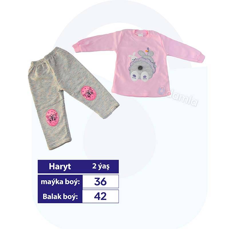 • Ayratynlyklary: Gyz çagalar üçin gülgüne-çal reňkli komplekt eşik - knopkaly longsliw we dyzy kebelekli balakdan ybarat bolup, sport bilen meşgullanan wagtyň, açyk meýdançada we gündelik geýmek üçin rahat we ýakymly, oňaýly çözgütdir. Ol rahatlygy we erkin hereket etmegi üpjün edýär. Ýüzi towşan suratly. Sargytlar tassyklanandan soň 1-7 iş günüň dowamynda gowşurylar.