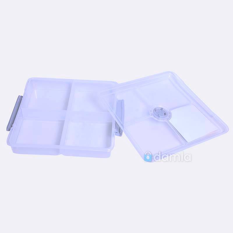 • Aýratynlyklary: 4 bölümli plastmas gap, dürli zatlary saklamak üçin amatly çözgütdir. Ol zatlary kategoriýalara bölüp, tertipli saklamaga mümkinçilik berýär. Şeýle gaplary dürli ugurlarda ulanyp bolýar: öýde, ofisde, garažda, daçada we ş.m. Gapakly bu gap iýmitleriň täze durmagyny üpjün edýär.