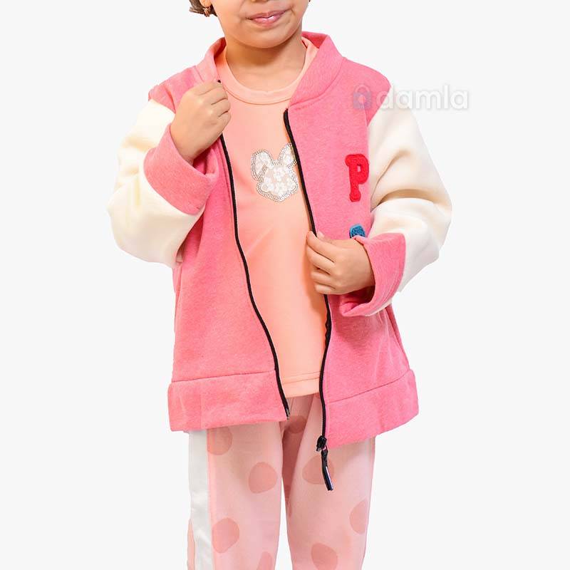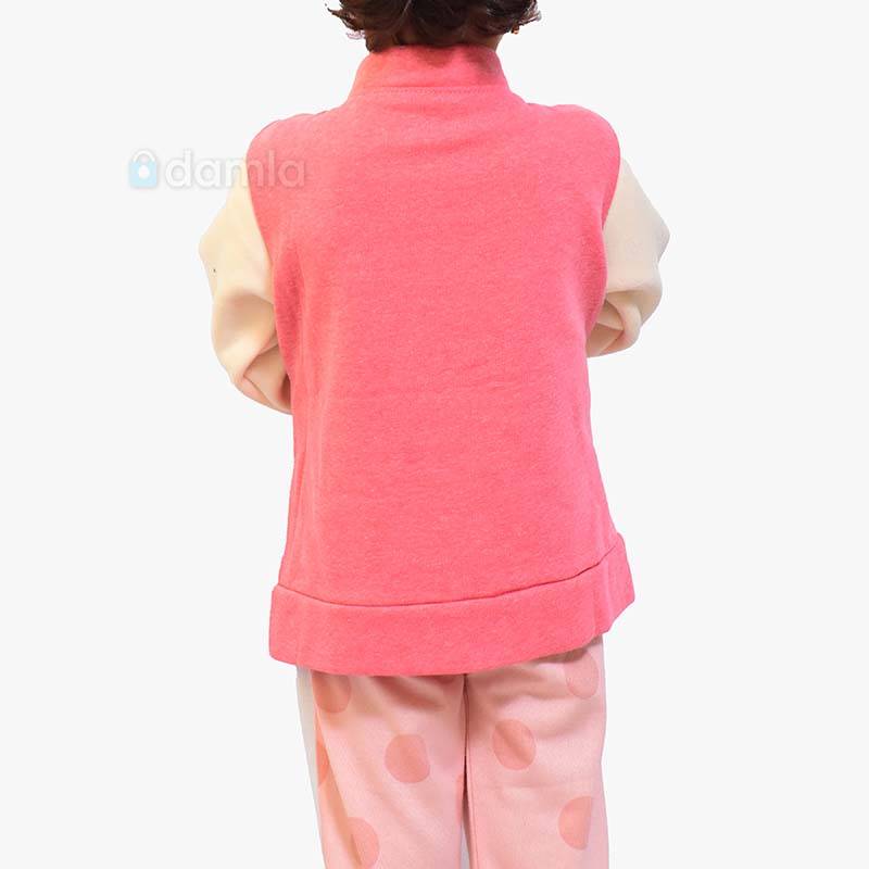 • Aýratynlyklary: Gyz çagalar üçin gülgüne-süýt reňkli tegelek dik ýakaly we uzyn ýeňli zamokly kurtka. Ýumşak we rahat bu balak hereket azatlygyny üpjün edýär, bu bolsa ony gündelik geýmäge amatly mümkinçilik berýär.