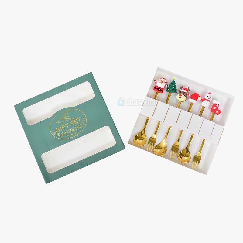 • Aýratynlyklary: "Täze ýyl sowgady" şekilli aşhana gural toplumy. Toplumda şekiller bilen bezelen 3 sany wilka we 3 sany sany çemçe bar. Ýokary hilli poslamaýan polatdan ýasaldy we elde tutmak üçin amatly. Baýramçylyk atmosferasyny döretmegi halaýan çagalar we ulular üçin ajaýyp saýlaw.