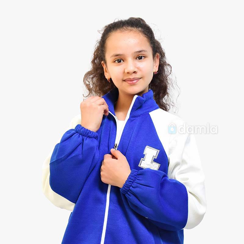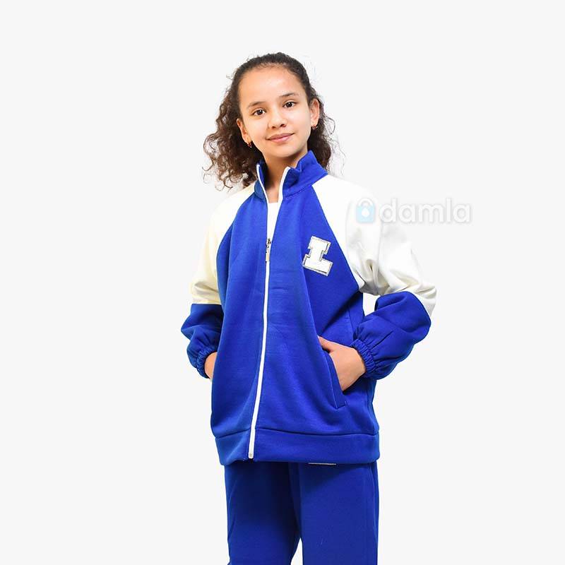 • Aýratynlyklary: Gyz çagalar üçin gök we ak reňkli komplekt eşik. Dik ýakaly, zamokly we döşi logotipli jübüli sportiwka we bili rezinli hem logotipli balagy bar. Ýumşak matasy we rahat biçüwi ony gündelik geýmek üçin ajaýyp saýlaw edýär.