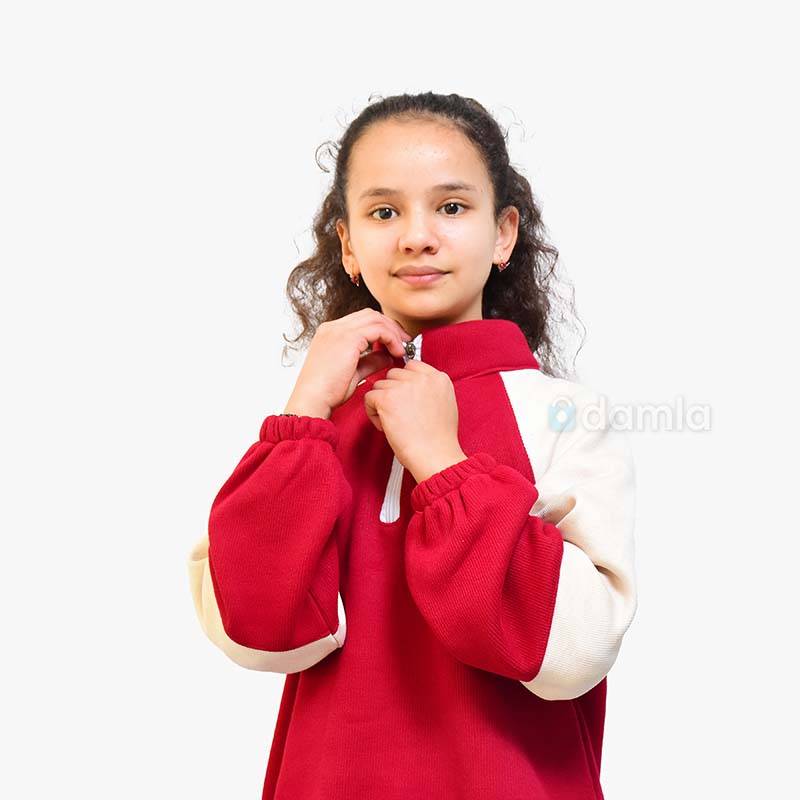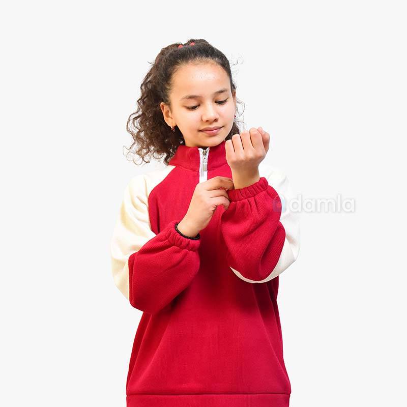 • Aýratynlyklary: Gyz çagalar üçin gyzyl we ak reňkli komplekt eşik. Dik ýakaly, ýarym zamokly we döşi logotipli tolstowka we bili rezinli hem logotipli balagy bar. Ýumşak matasy we rahat biçüwi ony gündelik geýmek üçin ajaýyp saýlaw edýär.