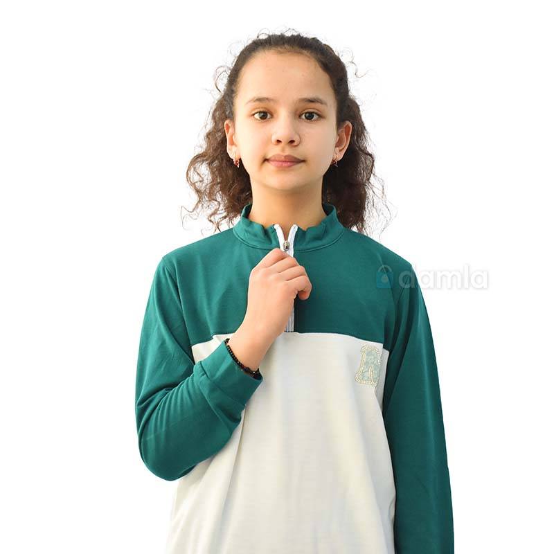 • Aýratynlyklary: Gyz çagalar üçin ýaşyl-ak reňkli, ýakasy zamokly we döşi logotipli uzyn ýeňli tolstowka. Ýumşak matasy we rahat biçüwi ony gündelik geýmek üçin ajaýyp saýlaw edýär.