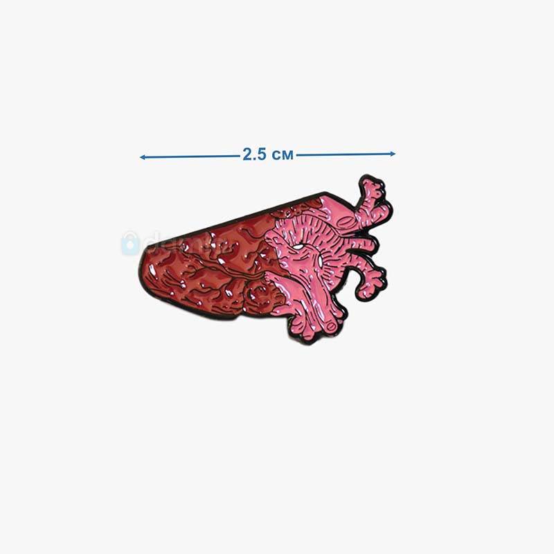• Aýratynlyklary: Bu anatomiki ýürek görnüşinde ýasalan kiçijik metal znaçok. Nyşan gülgüne reňkli we gyzyl hem gara reňkler bilen şekillendirilen.