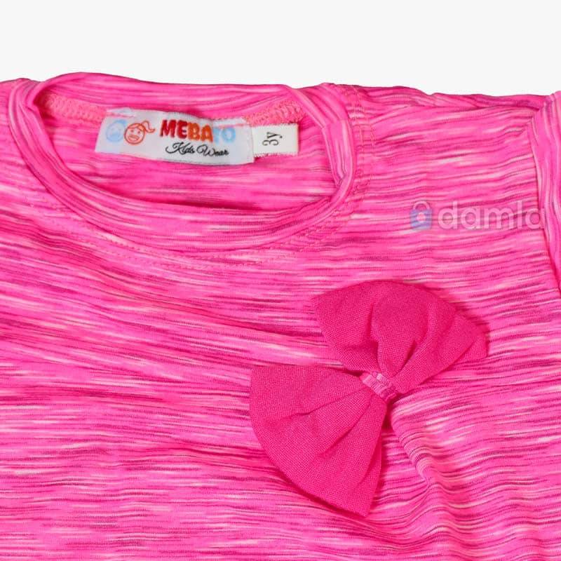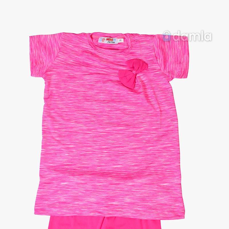 • Aýratynlyklary: Gyz çagalar üçin gülgüne reňkli komplekt eşik. Kelte ýeňli, tegelek ýakaly, futbolka. Futbolkanyň ýüzi bantik bilen bezelen. Bili rezinli, şortigyň aşagy tikin geçirilip bezelen. Gündelik geýmek üçin rahat we ajaýyp saýlaw.