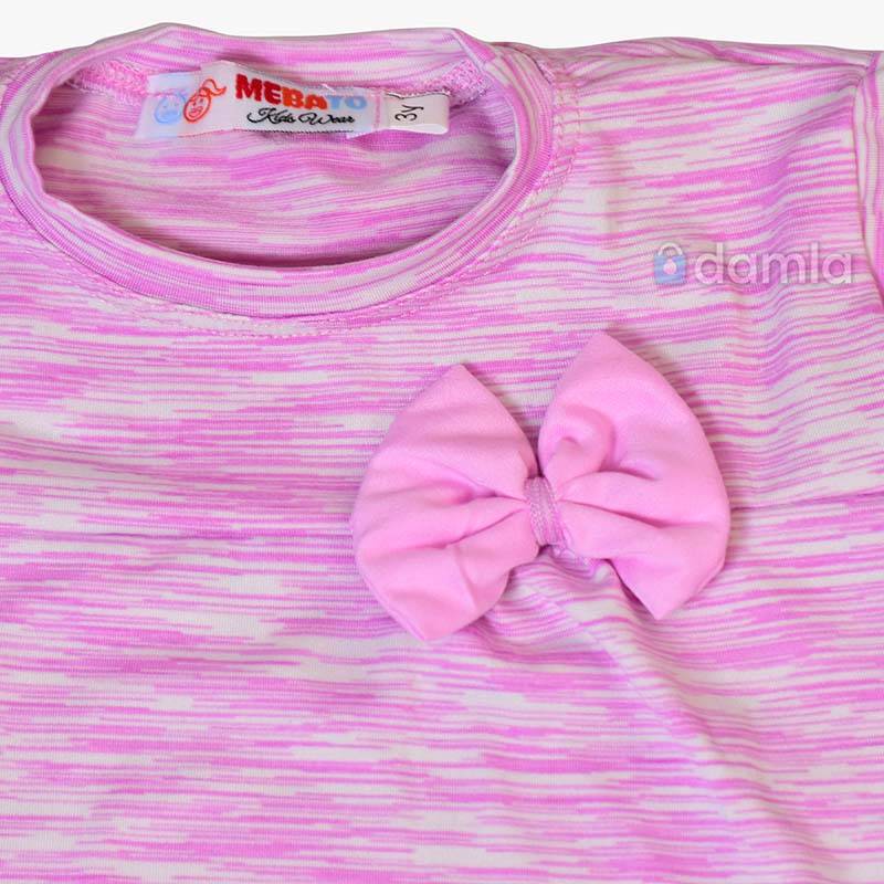 • Aýratynlyklary: Gyz çagalar üçin açyk gülgüne reňkli komplekt eşik. Kelte ýeňli, tegelek ýakaly, futbolka. Futbolkanyň ýüzi bantik bilen bezelen. Bili rezinli, şortigyň aşagy tikin geçirilip bezelen. Gündelik geýmek üçin rahat we ajaýyp saýlaw.