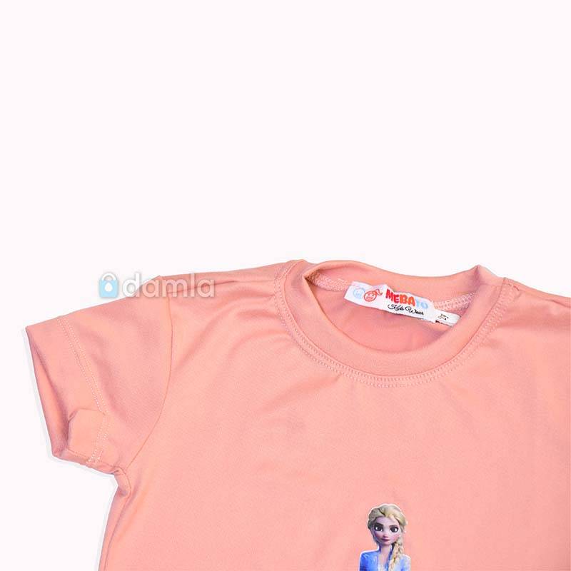 • Aýratynlyklary: Gyz çagalar üçin goýy bežewyý reňkli komplekt eşik. Kelte ýeňli, tegelek ýakaly futbolka. Futbolkanyň ýüzünde "Elsa we Anna" multfilimindäki Elsa gyzyň şekili bilen bezelen. Bili rezinli şortik. Gündelik geýmek üçin rahat we ajaýyp saýlaw.