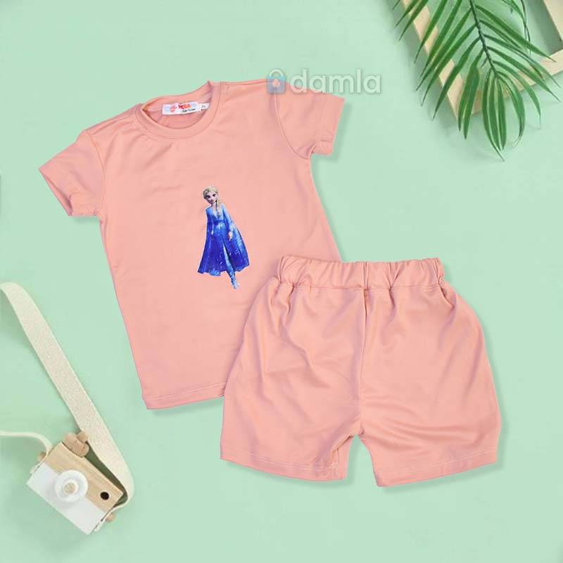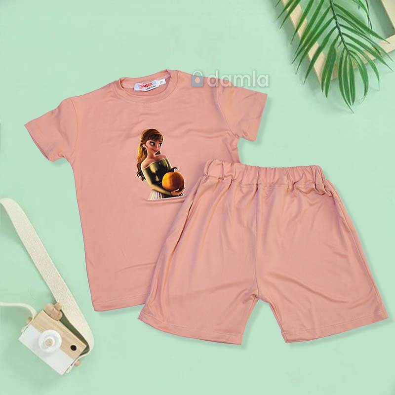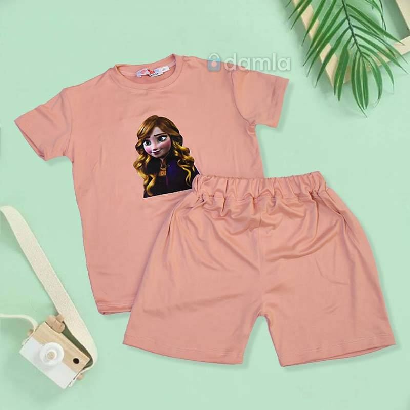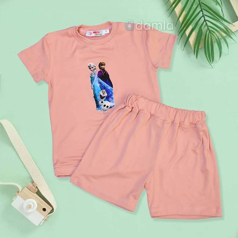 • Aýratynlyklary: Gyz çagalar üçin goýy bežewyý reňkli komplekt eşik. Kelte ýeňli, tegelek ýakaly futbolka. Futbolkanyň ýüzünde şa gyzynyň şekili bilen bezelen. Bili rezinli şortik. Gündelik geýmek üçin rahat we ajaýyp saýlaw.