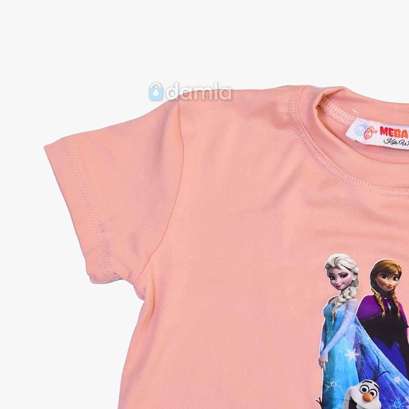 • Aýratynlyklary: Gyz çagalar üçin goýy bežewyý reňkli komplekt eşik. Kelte ýeňli, tegelek ýakaly futbolka. Futbolkanyň ýüzünde "Elsa we Anna" multfilimindäki Elsa we Anna gyzlarynyň şekili bilen bezelen. Bili rezinli şortik. Gündelik geýmek üçin rahat we ajaýyp saýlaw.