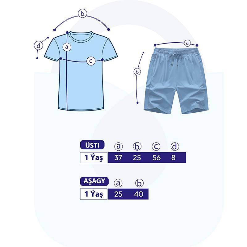 • Aýratynlyklary: Gyz çagalar üçin açyk gülgüne reňkli komplekt eşik. Kelte ýeňli, tegelek ýakaly futbolka. Futbolkanyň ýüzünde "Zoluşka" multfilimindäki Zoluşka şa gyzyň şekili bilen bezelen. Bili rezinli şortik. Gündelik geýmek üçin rahat we ajaýyp saýlaw.